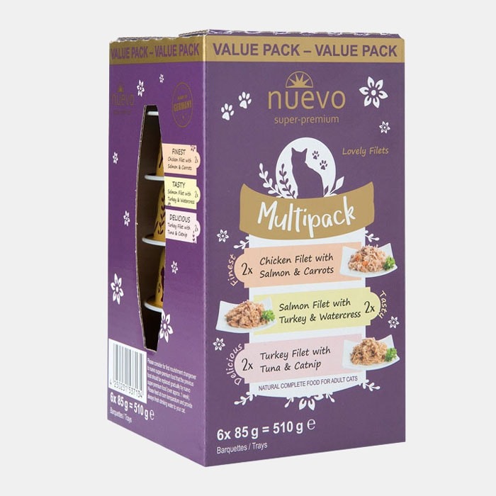 Los nuevos LovelyFilets en paté están elaborados con filetes de pollo, pavo o salmón de la más alta calidad. Su fórmula combina todas las vitaminas y minerales que tu gato necesita para una alimentación diaria completa y perfecta. Nuestro multipack ofrece a tu gato una selección ideal para cada día.